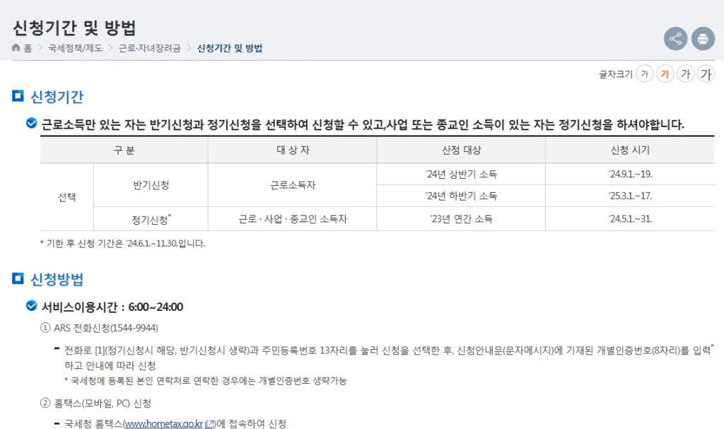 - 반기 신청: 근로소득자의 경우 2025년 03월 01일부터 03월 17일까지 반기 신청이 가능합니다.